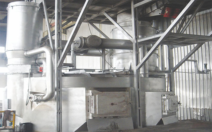 ·加料室,加料口下部,被預(yù)熱過的廢鋁料在爐子底下以浸泡方式熔化;