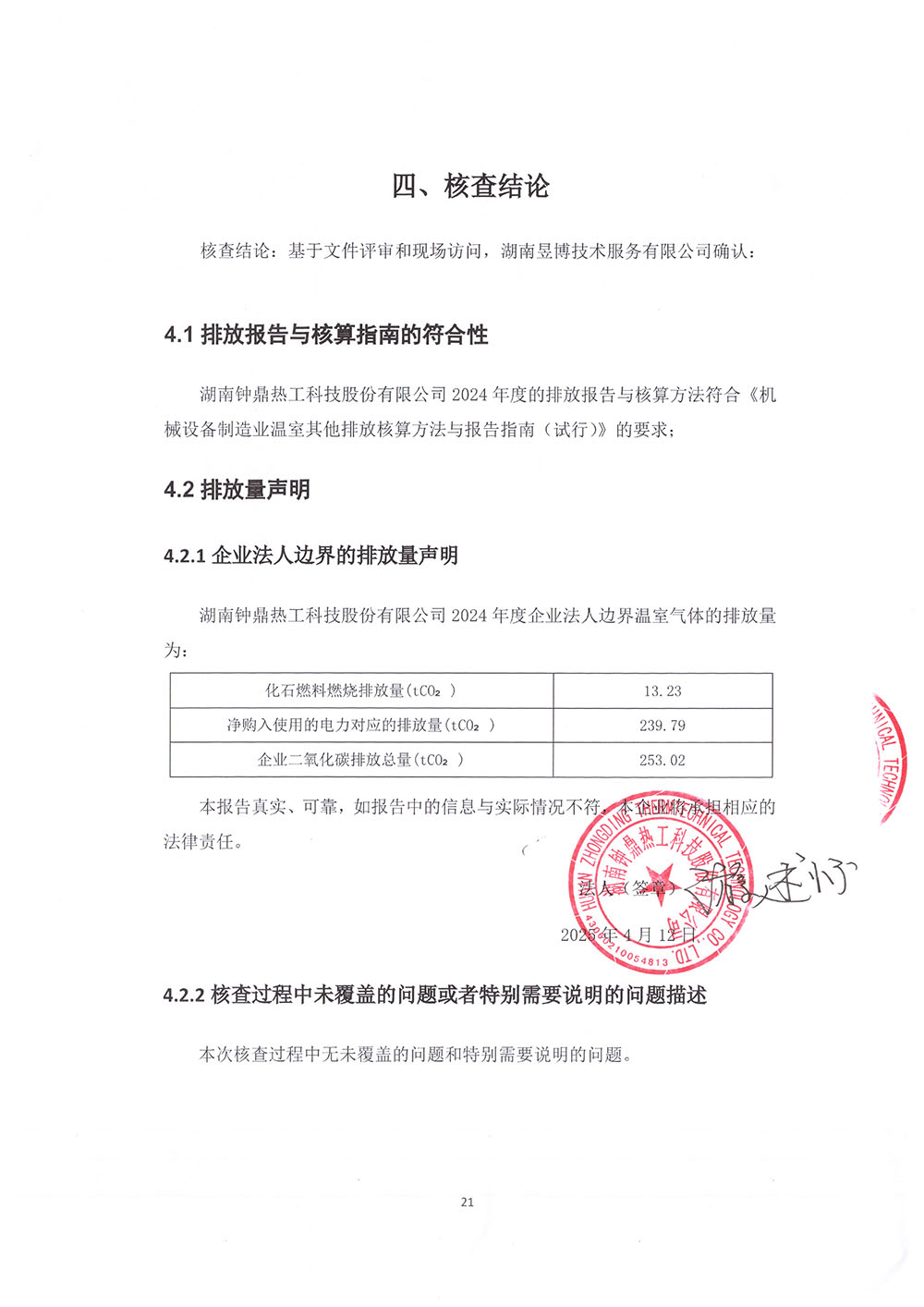 湖南鐘鼎熱工科技股份有限公司 溫室氣體排放報告